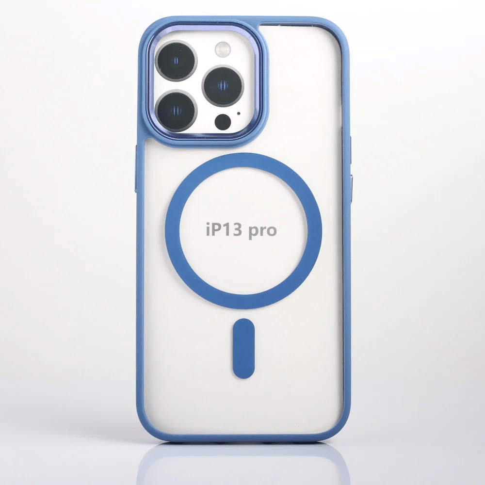 كفر ايفون 13 برو | بتقنية الماج سيف شفاف باطراف ازرق