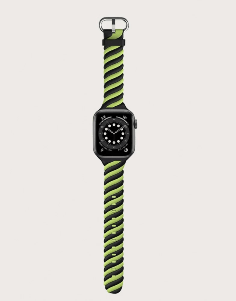 المميزات الأساسية:سوار ساعة ابل ربل مخطط باللون الأسود والتفاحيمتوافق مع ساعات ابل جميعهاإمكانية التحكم بتوسيع وتضيق السيرمقاس : 42,44,45